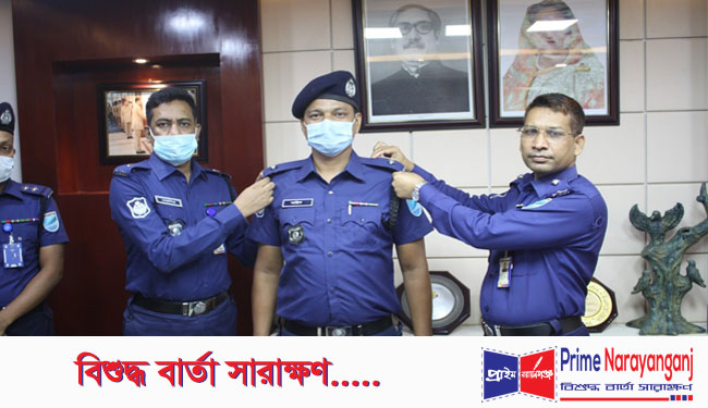 নারায়ণগঞ্জ জেলা পুলিশে কর্মরত পদোন্নতিপ্রাপ্ত তিন পুলিশ ইনস্পেক্টরকে র্যাঙ্ক ব্যাজ পড়িয়েছেন পুলিশ সুপার মোহাম্মদ জায়েদুল আলম ।