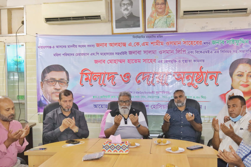 নারায়ণগঞ্জ-৪ আসনের সংসদ সদস্য শামীম ওসমানের সহধর্মিনী সালমা ওসমান লিপি, শ্বশুর সাইফুদ্দিন আহমেদ ও বিকেএমইএর সিনিয়র সহ সভাপতি মোহাম্মদ হাতেমের রোগমুক্তি ও সুস্থতা কামনায় মিলাদ ও দোয়া অনুষ্ঠিত হয়েছে।