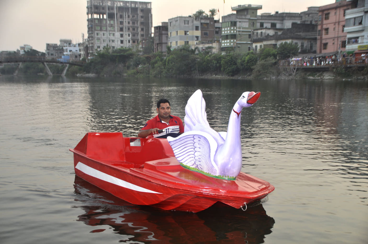 সোমবার (০৯ নভেম্বর) দুপুরে লেকে গিয়ে দেখা যায়, নৌ ভ্রমনের জন্য পরীক্ষামূলক হিসাবে তিনটি বোট আনা হয়েছে। পরীক্ষামূলক হলেও বোটগুলো দেখতে ইতিমধ্যেই দর্শনার্থীদের ভীড় ছিলো চোখে পড়ার মতো।
