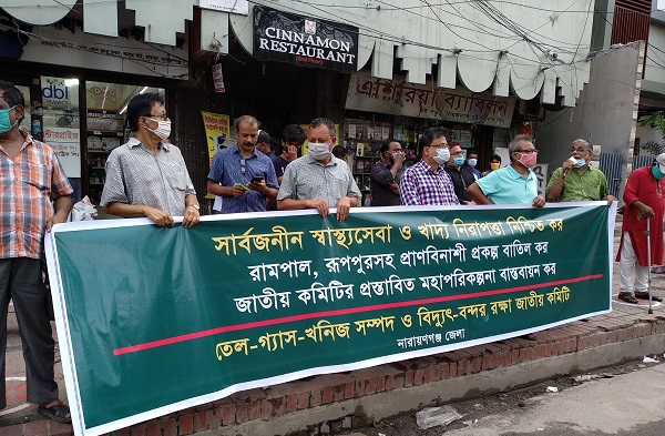 শনিবার (১৮ জুলাই) নারায়ণগঞ্জের প্রেসক্লাবের সামনে সার্বজনীন স্বাস্থ্যসেবা, খাদ্য নিরাপত্তা নিশ্চিত, রামপাল ও রূপপুর বিদ্যুৎ কেন্দ্র বাতিলের দাবীতে আয়োজিত এক মানববন্ধনে প্রধান বক্তার বক্তব্যে তিনি এ মন্তব্য করেন।