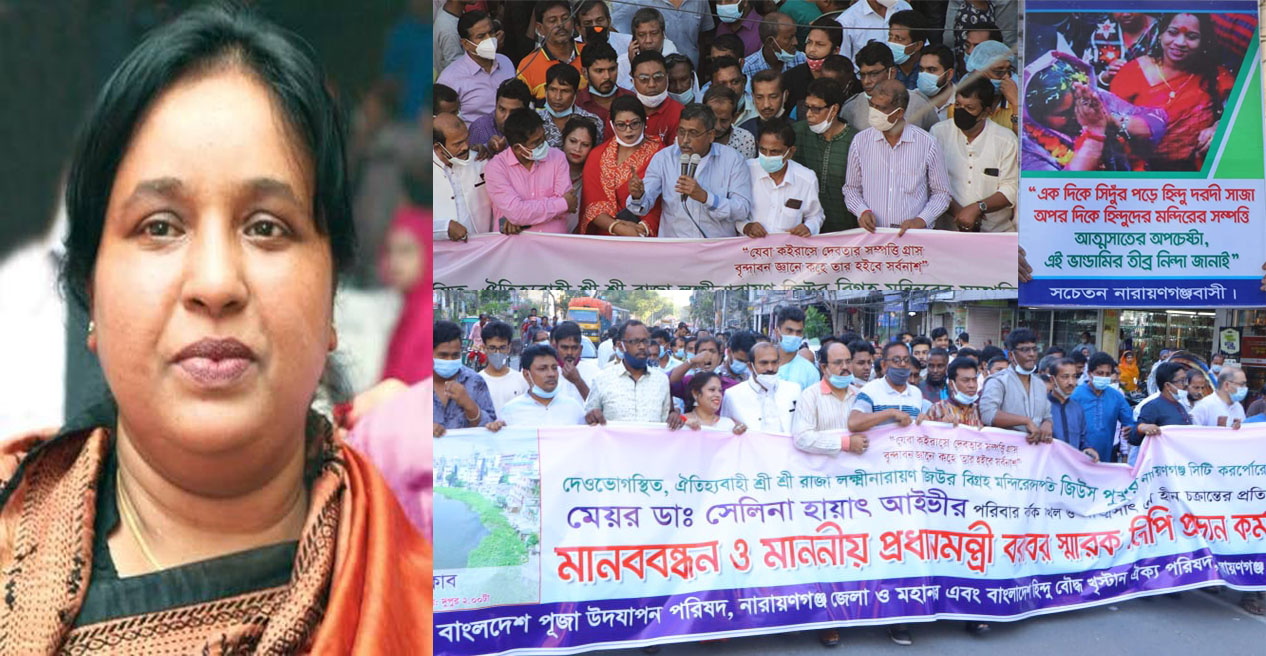গতকাল বুধবার বিকেলে নারায়ণগঞ্জ হিন্দু বৌদ্ধ খৃস্টান ঐক্যে পরিষদ, নারায়ণগঞ্জ জেলা ও মহানগর পূজা উদযাপন পরিষদে আইভীর বিরুদ্ধে মানববন্ধন করে। ওই মানববন্ধনে মেয়র আইভী ও তার পরিবারের বিরুদ্ধে দেবোত্তর সম্পত্তি দখল ও আত্মসাতের হীন চক্রান্তের অভিযোগ আনা হয়।