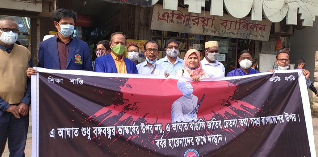 এসময় সহ-সভাপতি আব্দুল আউয়াল বলেন, অত্যন্ত দুঃখের বিষয় যার জন্য আমরা একটি স্বাধীন দেশ পেয়েছি, যার জন্য আজ আমরা এখানে নিজের ভাষায় কথা বলতে পারছি সেই জাতির জনক বঙ্গবন্ধু শেখ মুজিবুর রহমান মুজিবের ভাস্কর্য ভাঙ্গার প্রতিবাদে আজ আমরা এখানে প্রতিবাদ সমাবেশ করছি। একটি কুচক্রীমহল তার ভাস্কর্যের বিরুদ্ধে বক্তব্য দিচ্ছে এবং কুষ্টিয়ায় ভাস্কর্য ভেঙ্গে ফেলেছে। আমরা এর তীব্র নিন্দা জানাই এবং এ কাজে জড়িত অপরাধীদের গ্রেফতার করে দৃষ্টান্তমূলক শাস্তি দেয়া হোক।