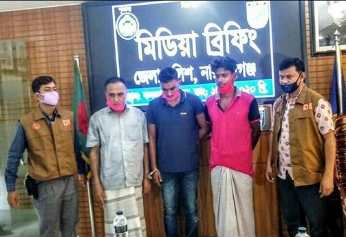 গ্রেপ্তারকৃত আসামীরা হলেন, নরসিংদী জেলার বেলাব থানার রাজারবাগ আমলাবো এলাকার মৃত মজিবর রহমানের ছেলে মোঃ শাহিদুল ইসলাম ওরফে শাহিদ(৫০), ফেনী জেলার দাগনভূইয়া থানার হাসান গনিপুর ৩নং পূর্ব চন্দ্রপুর ইউপি এলাকার মোঃ নুর আলম ছেলে মোঃ আমির হোসেন ওরফে শাহিন (৩০), দক্ষিণ করিমপুর ৬নং দাগনভূইয়া ইউপি এলাকার মৃত আবুল হাসেম এর ছেলে মোঃ সুমন আহম্মেদ (৩২)।