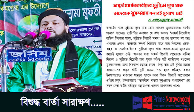ভার্স্কয সমর্থনকারীদের সুন্নীতো দূরে থাক,মুসলমান বলার সুযোগ নেই বলে মন্তব্যে করেছেন এনায়েতুল্লাহ আব্বাসী জৈনপুরী।