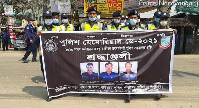 ২০২০ সালের কর্তব্যরত অবস্থায় জীবন উৎসর্গকারী সকল বাংলাদেশ পুলিশ সদস্যদের প্রতি ফুল দিয়ে শ্রদ্ধা জানিয়েছেন কাঁচপুর হাইওয়ে থানার পুলিশ সদস্যরা।